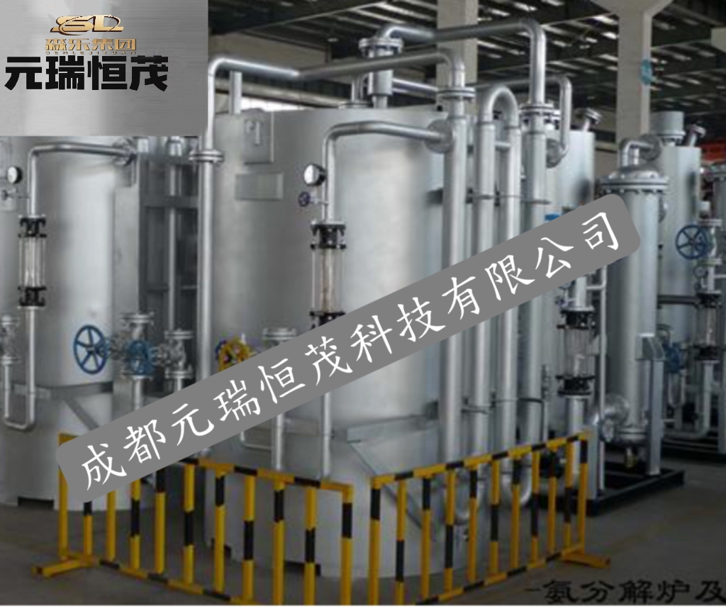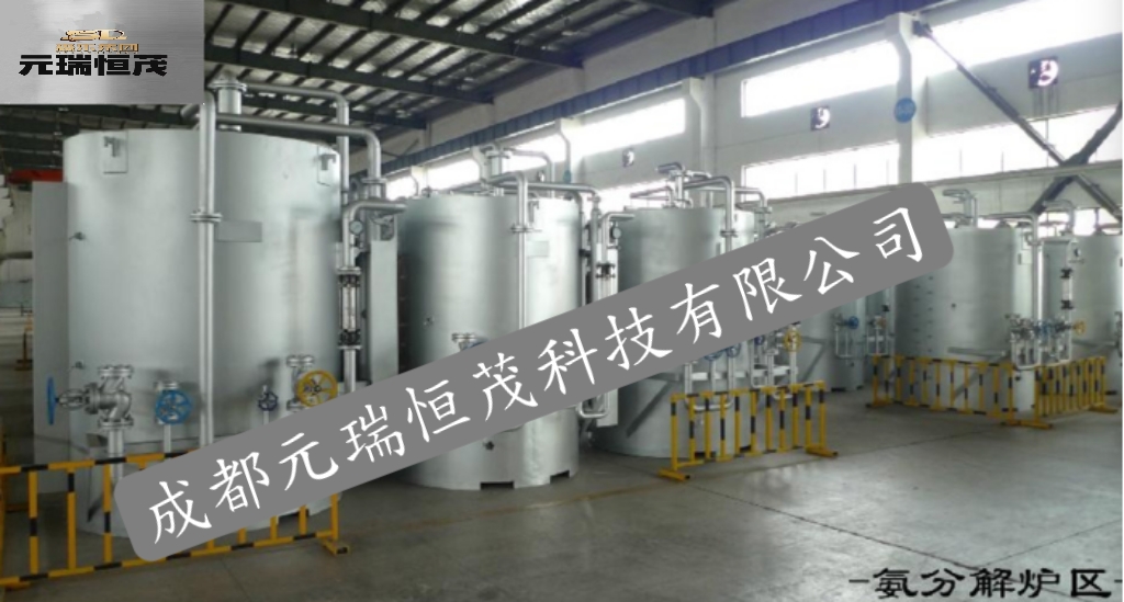 氨分解制氢炉是以工业氨气为原料,在催化剂的作用下,加热分解得到含75%H2和 25%N2的氢氮混合气。经过纯化器后的混合气,残氨含量小于2PPm,露点可达-70℃,氧含量小于3PPm。
